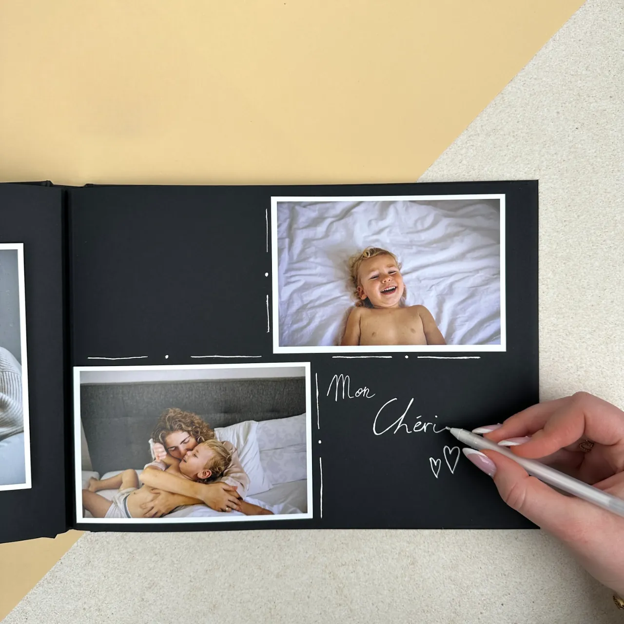 A special white pen to write nice anecdotes in the album